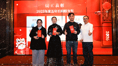 获得2025年度五年长期服务奖的人员有:叶秋秀、刘会新、魏嘉茂、胡定乾。