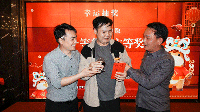 年会除了节目表演,还设置了分量十足的奖项。抽奖环节惊喜不断,幸运大奖轮番揭晓,每一份惊喜都承载着公司对同仁的关怀与祝福,现场暖意融融、氛围热烈。